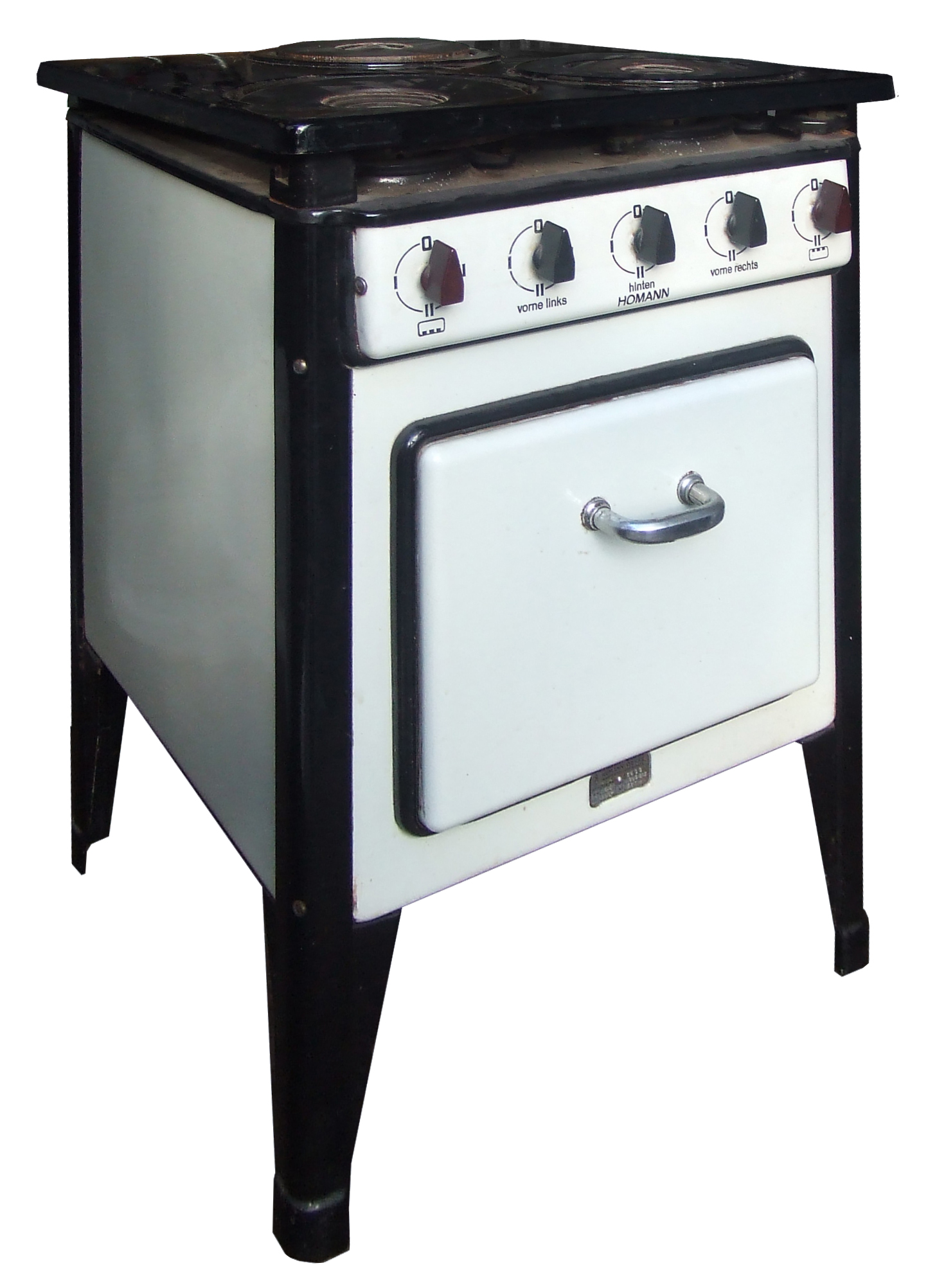 - Elektroherd aus einer Frankfurter Küche: drei Elektroplatten und ein Backofen mit Ober- und Unterhitze