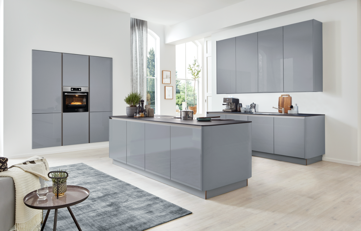 - Papyrusgrau Hochglanz als stilvolle Basis